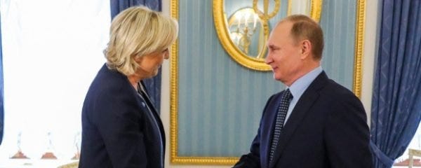Los asesores de Le Pen visitaron el Donbass en 2015 y 2016, expresaron su apoyo a Moscú por intentar tomar por la fuerza la región. En el Parlamento Europeo los 22 eurodiputados del Front National votaron a favor de los intereses rusos siempre que tuvieron una oportunidad de hacerlo.